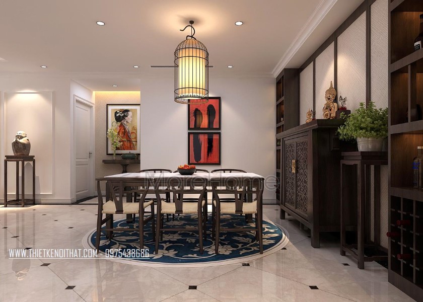 Bàn ghế ăn gỗ óc chó tại chung cư Thăng Long Number One