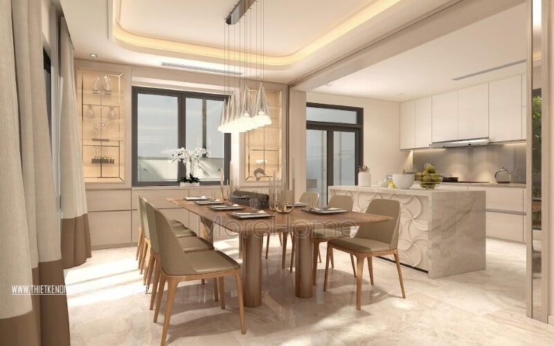Thiết kế nội thất phòng ăn đơn giản, hiện đại và ấn tượng cho nhà biệt thự