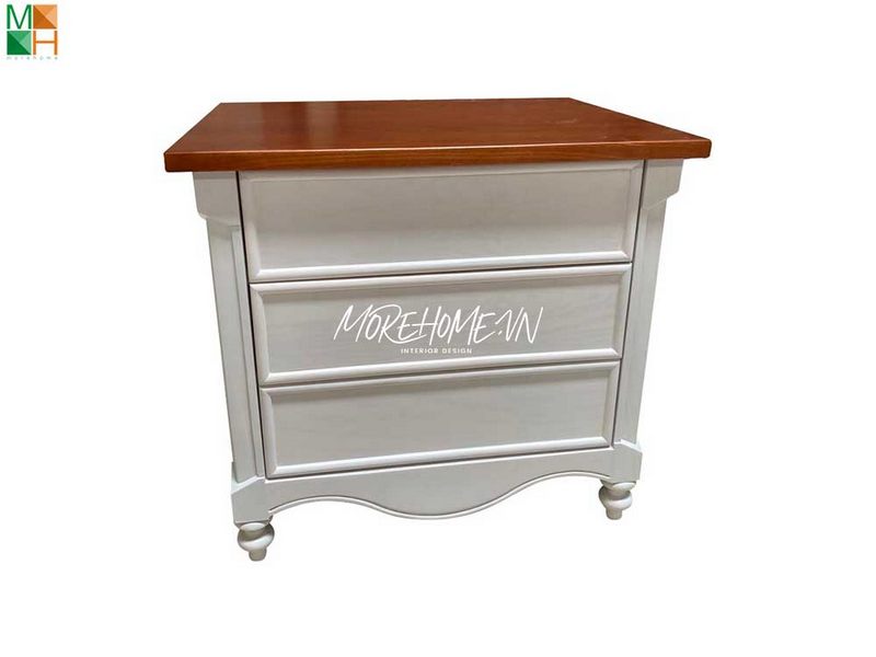 Mẫu tab đầu giường có phong cách đương đại, làm bằng gỗ tự nhiên sơn trắng sang trọng, phù hợp với phòng ngủ.