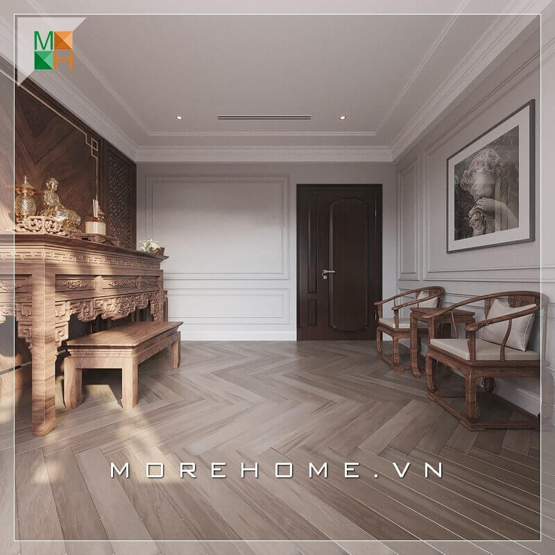 Với lòng thành kính cũng như sự am hiểu về cách bố trí, thiết kế phòng thờ sao cho hợp phong thủy, Morehome xin giới thiệu quý vị ý tưởng bố trí phòng thờ thờ Phật Quan Âm trong dự án thiết kế nội thất biệt thự Vinhomes Imperia Hải Phòng.