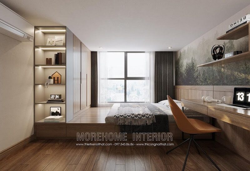 Mẫu thiết kế nội thất phòng ngủ chung cư đẹp với mẫu giường ngủ gỗ tự nhiên được yêu thích tại MoreHome